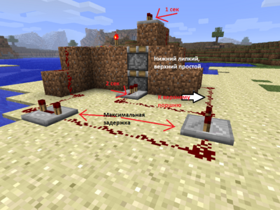 Проложите красную пыль, как показано на картинке, к верхнему поршню (общая задержка повторителей 1,2 сек)