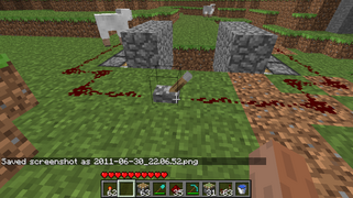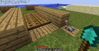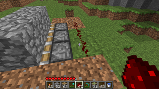 Общий вид готового механизма, но спрятанного под землю (простым закрыванием блоками сверху всех цепей). Примечание: при закрытии цепей не зажмите провод!