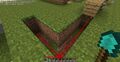 Этап 9. Выкопайте траншею дальше (4 блока до и после поворота) и заложите красной пылью.