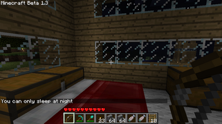 Кровать (англ. Bed) — блок, который позволяет игроку пропустить ночное время до наступления утра. Последняя кровать, на которой спал игрок, становится точкой его возрождения после смерти.