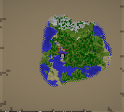 Обратите внимание, точка с координатами x=0, z=0 не является точкой спауна, совпадения случайны. С версии 1.4 при взгляде в любую сторону показывается название части света (англ.):