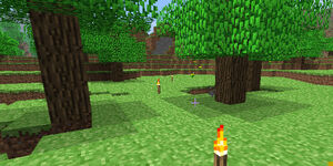 Основной способ отметить дорогу, просто оставить след факелами. Проблема этого метода, что обычно нет способа узнать, в правильном направлении вы движетесь или нет. Проблема решается, если выкладывать факелы в форме стрелки, но это требует больших затрат угля и палок. Минус этого метода в том, что днём такая дорожка будет плохо заметна в лесу, к тому же на большие расстояния потребуется слишком много факелов. Чтобы отметить направление, можно выкладывать группами по 1-2-3-1-2-3-1-2… факела (по ходу движения), это экономичнее стрелок. Но есть ещё более экономичный способ использования ресурсов — путешествуя, оставляйте факелы на одной из сторон куба (например, только с той стороны, откуда Вы двигаетесь).