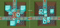 Очень часто возникает необходимость снабдить железные дороги станциями, чтобы можно было без проблем перемещаться между домом, шахтой, прудом, лесом, фермой без пересадок. Вообще, станции очень полезная штука. Станция должна уметь принять вагонетку и отправить её в любую сторону (вперед или назад) без разрушения. Существуют разные варианты станций, но самые простые и функциональные представлены ниже.