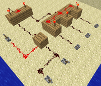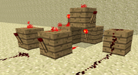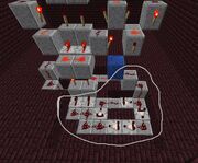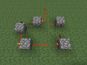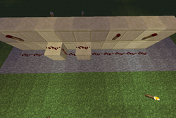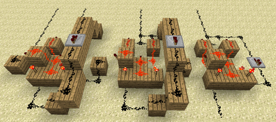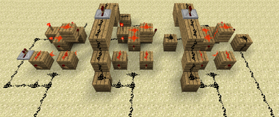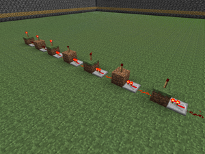 Данный механизм может использоваться во многих строениях, будь то посадочная полоса аэропорта, вывеска магазинчика на вашем любимом SMP сервере, станция метро. Даже ваше эпичное строение будет по особому выделяться ночью переливанием красных факелов. Факелы будут по очереди зажигаться «волной». Схема простейшая и основана на повторителях и тактовых генераторах. Приступаем к монтажу.