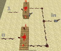 Через рычаги 0 (на схеме) будет вводиться код для открытия двери (я пишу про дверь, потому что это одна из двух вещей, на которую можно взаимодействовать током). Рычаги 1 определяют какие из рычагов 0 будут «правильными». Рычаг 2 — это «засов» (если факел над «засовом» горит, то он «задвинут»). А 3 — выход идущий к двери.