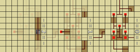 2. Засов. «Засов» (рычаг) выключен (факел над ним горит). В этом случае нажатие нажимной пластины дверь не откроет.