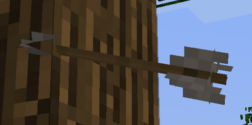 | 1.6 | Стрелы застревали в любых блоках, даже нетвёрдых. К примеру, они застревали на факелах, сахарных тростниках и порталах. | ||||
