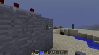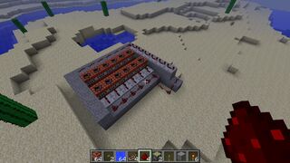 В качестве примера приводится пушка с автоматическим зажиганием снаряда после заряда. Помимо нескольких любых твёрдых блоков потребуются вода, красные пыль, факел (зависит от конструкции) и повторитель, а также кнопка.