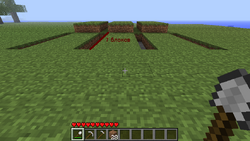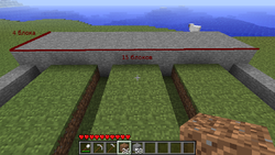 Для примера на скриншоте показаны две параллельные канавки длиной 5 блоков каждая.