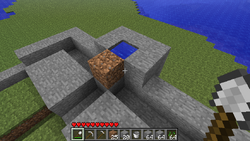 Теперь необходимо создать каналы глубиной в один и длиной в семь блоков для орошения грядок.