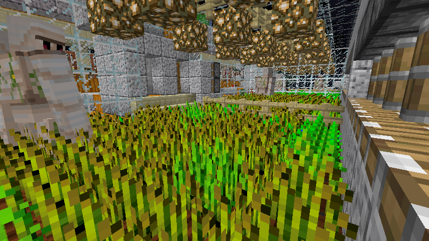 2. Ферма должна быть максимально освещена. Это необходимо как для роста растений, так и для предотвращения спауна враждебных мобов в ночное время на территории фермы.