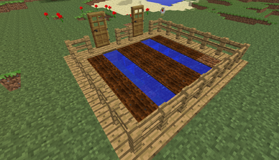 Данный вид фермы является самым распространенным среди игроков, так как он является самым очевидным методом выращивания урожая. Постройка такой фермы не занимает много времени. Ниже представлена инструкция по строительству одной из разновидностей ферм простейшего типа.