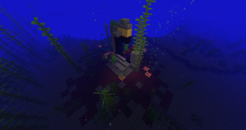 Если разрушенный портал генерируется под водой, он может создавать водовороты из-за близлежащих магмовых блоков.