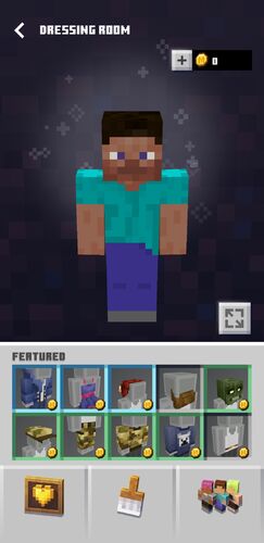 Редактор персонажа (англ. Character creator) — это функция в Bedrock Edition и Education Edition, которая позволяет игроку настраивать свои скины с помощью бесплатных и платных косметических предметов. Доступ к нему можно получить, выбрав кнопку профиля персонажа в главном меню. Его также можно использовать для прикрепления плащей. Многие элементы одежды стоят Minecoins. Есть и особые вещи, которые можно получить за челенджи в Minecraft Earth.
