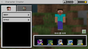 Меню редактора персонажа в Bedrock Edition.