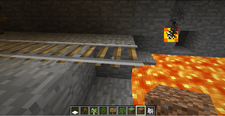 Если установить над прямым рельсом после спуска какой-либо блок, вагонетка, едущая вниз, остановится, а едущая вверх — сможет проехать.