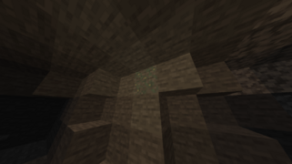 Светящийся лишайник натурально генерируется под поверхностью земли на камне, андезите, диорите, граните, кальците, туфе и капельниковом блоке.[