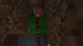- В левом конце маленького тоннеля (шаг 3) выкапываем ещё 3 блока, а в правом - 2. В концы ставим липкие поршни (советуется сделать перед этим эффективную ферму слизней) (2 с одной стороны и 2 с другой один над другим) (лицом к нам) и закрываем одним столбиком земли (камня, булыжника и т. д.)