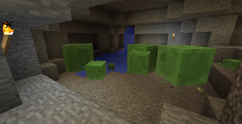 | 12w40a | Слизни теперь спаунятся в болотном биоме при низком уровне освещения, однако всё ещё могут появиться на большой глубине. Они не умеют плавать и при попадании в воду, прыгают на ней, не предпринимая попыток выбраться. | ||||