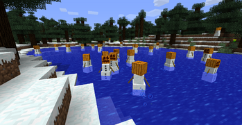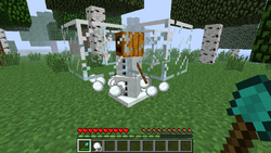 | Во время бета-тестирования снежные големы атаковали игроков, держа в руках пшеницу. | |||||