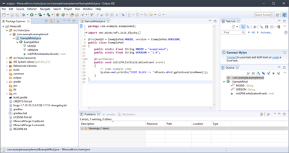 C:\Program Files\Java\jre1.8.0_241») и в Path был указан путь к bin-папке JDK после точки с запятой(если в конце списка) (по-умолчанию: «C:\Program Files\Java\jdk1.8.0_241\bin»).gradle/wrapper/gradle-wrapper.properties параметр distributionUrl на https\://services.gradle.org/distributions/gradle-2.6-bin.zip и удалите папку .gradle в директории пользователя (ошибка Received status code 501 from server: HTTPS Required и ошибки связанные с apply plugin: 'forge').Нужно настроить Eclipse для работы с Minecraft. Первым делом зайдите в него. Он предложит выбрать рабочую директорию (Workspace). Введите туда путь к папке «eclipse» в папке (Путь к папке должен содержать только английские буквы), куда вы распаковали содержимое Forge и поставьте галочку для того чтоб окно больше не появлялось. В примере это «D:\MCModding\eclipse». Если всё прошло успешно, то слева в Eclipse вы увидите раскрывающееся меню Minecraft, а снизу не увидите красных ошибок.