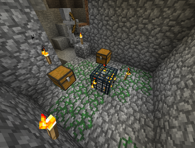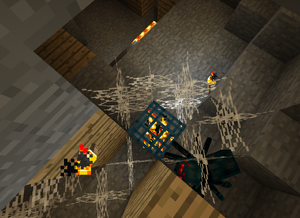 В заброшенных шахтах можно встретить спрятанные в паутине спаунеры, генерирующие пещерных пауков.