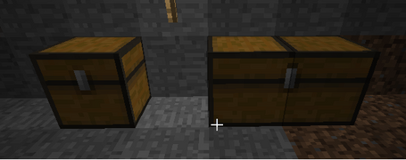 Если рядом друг с другом поставить два сундука, то они образуют единый большой сундук, который в два раза больше по объёму и может вместить 54 стопки. Двойной сундук нельзя открыть, если хотя бы над одной из его половин есть непрозрачный блок. При уничтожении одного из его блоков выпадут предметы только из этой половины, а оставшаяся продолжит функционировать как обычный одиночный сундук. В интерфейсе верхняя половина всегда соответствует блоку сундука, который расположен левее.