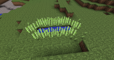Чтобы плотно выращивать тростник, можно посадить его, окружая ямы 1×1 с водой. Таким образом, на каждую такую яму приходятся 4 стебля по форме знака +. По закономерности, ямы с водой ставятся по форме буквы Г — 2 блока в одну сторону и 1 блок перпендикулярно.