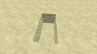 Найдите ровную площадку. Затем выстройте на ней блоки земли и травы в одну линию произвольной длины. Эта насыпь или бордюр будет служить местом для посадки тростника. Затем окружите её блоками булыжника, например, как показано на втором рисунке. Одну из канавок, которая образовалась между бордюром и стенкой из булыжника, залейте водой.