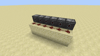 Последняя операция, необходимо разместить 2 слой поршней и красную пыль так, чтобы все поршни активировались с наступлением ночи. Как это сделать показано на рисунке.