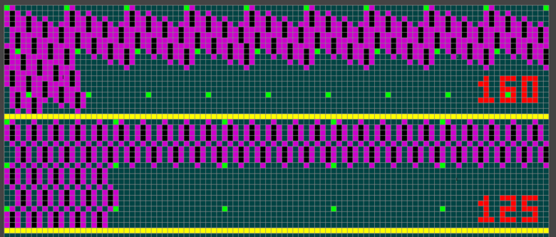 Для более эффективной добычи ресурсов, возможно просмотреть все доступные блоки на определённой высоте. Для примера взято 2 схемы проходки на 3 блока высотой, в разрезе (100×20 блоков):