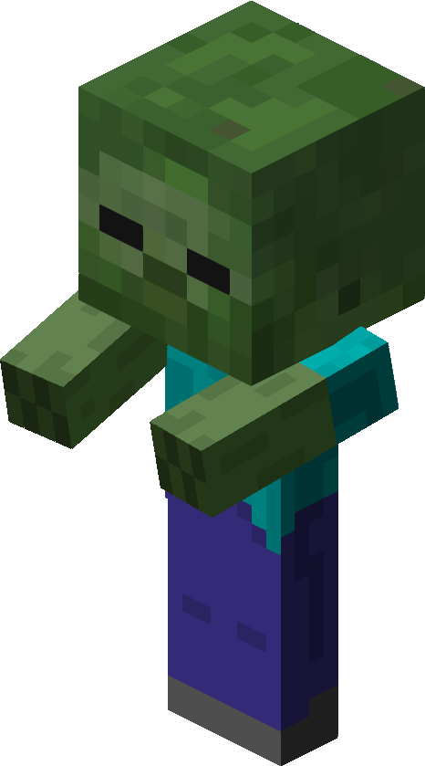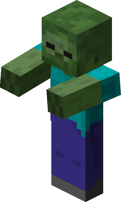 Зомби (англ. Zombie) — враждебные мобы, атакующие игроков и деревенских жителей, горящие на солнце.