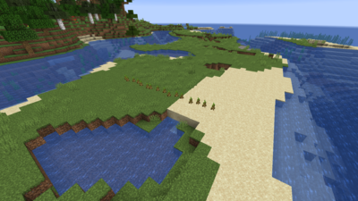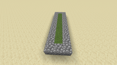 Найдите ровную поверхность и постройте фундамент для будущей фермы. Длина и ширина формы: 11x3. Посередине фундамента заложите грязь или дёрн.