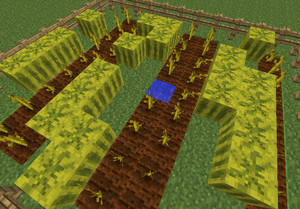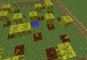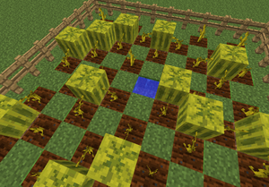 Во время второго этапа роста на любом свободном блоке земли рядом с ростком появится блок соответствующего растения, который можно собрать (сбор арбузов приносит ломтики, сбор тыкв — блоки тыкв).