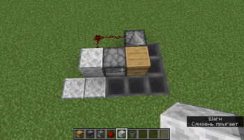 Ставим воронки вереницей, как на картинке. Воронка рядом с андезитом смотрит вниз, остальные присоединены цепочкой к ней. Ставим воронку на раздатчик.