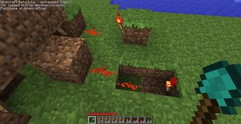 Этап 14. Строим линию для провода пятого ряда факелов (среднего). Убираем блок над факелом, иначе система работать не будет!