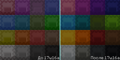 Новые цвета шалкеров и шалкеровых ящиков. Цвета фиолетовых шалкеров и шалкеровых ящиков были позже изменены на нормальные.