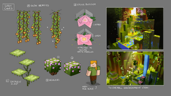Для получения информации о руководстве по всем дополнениям и изменениям в этом обновлении см. Руководства по Java Edition/Caves & Cliffs и Руководства по Bedrock Edition/Caves & Cliffs.