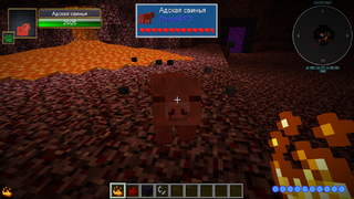 Адская свинья — нейтральный моб, который спаунится на песке душ в Нижнем мире. В основном, спаунятся группами. При атаке они поджигают врага. Могут быть приручены огненным порошком как обычные домашние животные. При приручении меняют цвет с красного на оранжевый. После приручения адской свиньи её здоровье опускается до 20.