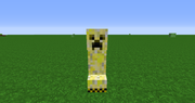 Когда электрический крипер взрывается, вызывается молния. Этот крипер имеет яркий жёлтый окрас.