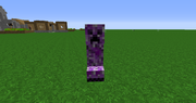 Если крипер-телепат взрывается рядом с игроком, то он подлетает на 20 блоков ввысь. Этот крипер имеет фиолетовый окрас.