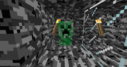 Световой крипер очень яркий, что делает его достаточно заметным. При взрыве оставляет после себя светящийся камень.