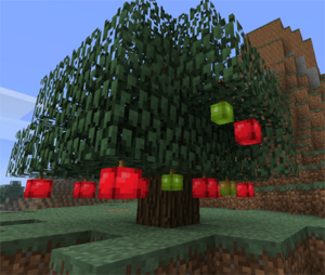 На нижних гранях куба листвы через некоторое время появляются яблоки, условие их появления — пустое пространство под листвой. Яблоки пройдут несколько фаз роста и, созрев, упадут на землю. Процесс роста можно ускорить, используя костяную муку на плоды.