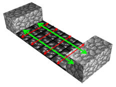 Есть специальное условие для крепления резиновых листов, и поэтому если не закрепить листы должным образом, то они пропадут под весом игрока. Для надёжного крепления к резиновому листу с двух его противоположных сторон должны прилегать твёрдые блоки или непосредственно, или через другие блоки листов. На примерах справа показана правильная установка резиновых листов (направление, где есть твёрдые блоки, отмечено зелеными стрелками, где нет — красными). И показан пример неправильной установки, где блоки только с одной стороны.