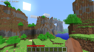 Infdev сначала генерирует небольшую область карты вокруг первоначальной точки появления игрока, а затем продолжает генерацию карты по мере продвижения игрока в неисследованные области. Карты, генерируемые Infdev, теоретически могут быть до восьми раз больше, чем поверхность Земли, достигая по площади 4,096×1015 (4,096 квадриллиона) км², но уступать ей по общему объёму, так как карта ограничена по глубине отметкой 64 метра. Именно в Infdev впервые замечен эффект Далёких земель.