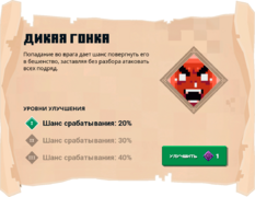 Дикая гонка (англ. Wild Rage) — это чары в Minecraft Dungeons, которые дают игроку небольшой шанс привести моба в «ярость», что делает его враждебным по отношению к другим мобам. Шанс срабатывания увеличивается с каждым уровнем улучшения.