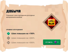 | I | Шанс повышен на +100 % | 1 очко зачарований |