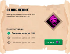 Ослабление (англ. Weakening) — это чары в Minecraft Dungeons, которые ослабляют атаки врагов рядом с игроком, когда игрок атакует.