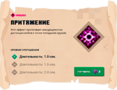 Притяжение (англ. Gravity) — это чары в Minecraft Dungeons, которые дают игроку возможность притянуть ближайших мобов к удару. Продолжительность притяжения увеличивается с каждым уровнем улучшения. Это одно из немногих чар, применимых как к оружию ближнего боя, так и к оружию дальнего боя.