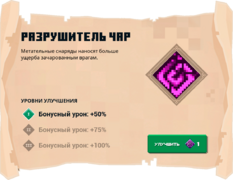 Разрушитель чар (англ. Unchanting) — это чары в Minecraft Dungeons, которые заставляют стрелы наносить больше урона зачарованным мобам. Процент наносимого бонусного урона увеличивается с каждым уровнем улучшения.